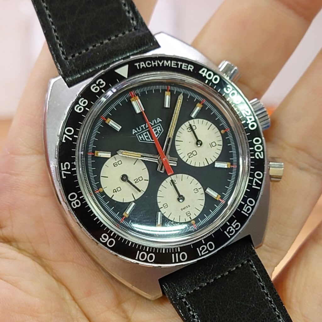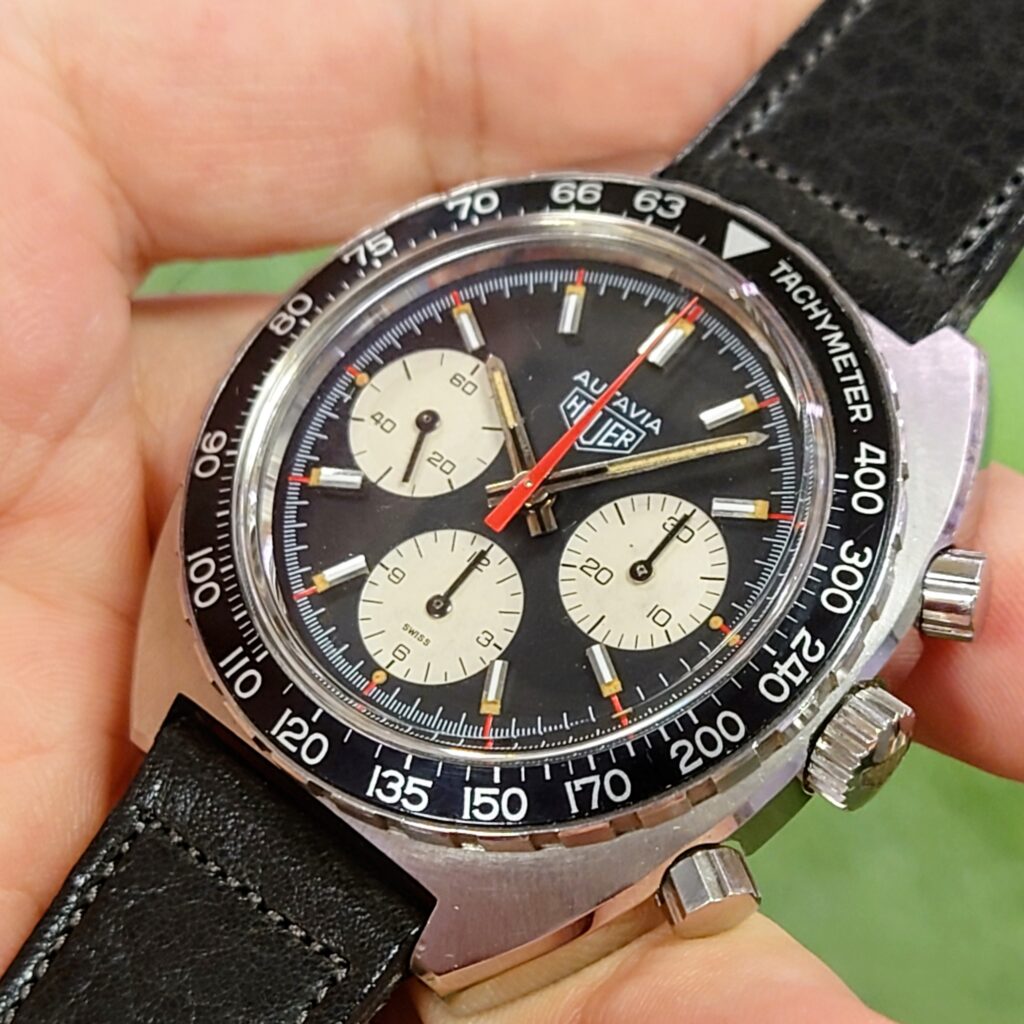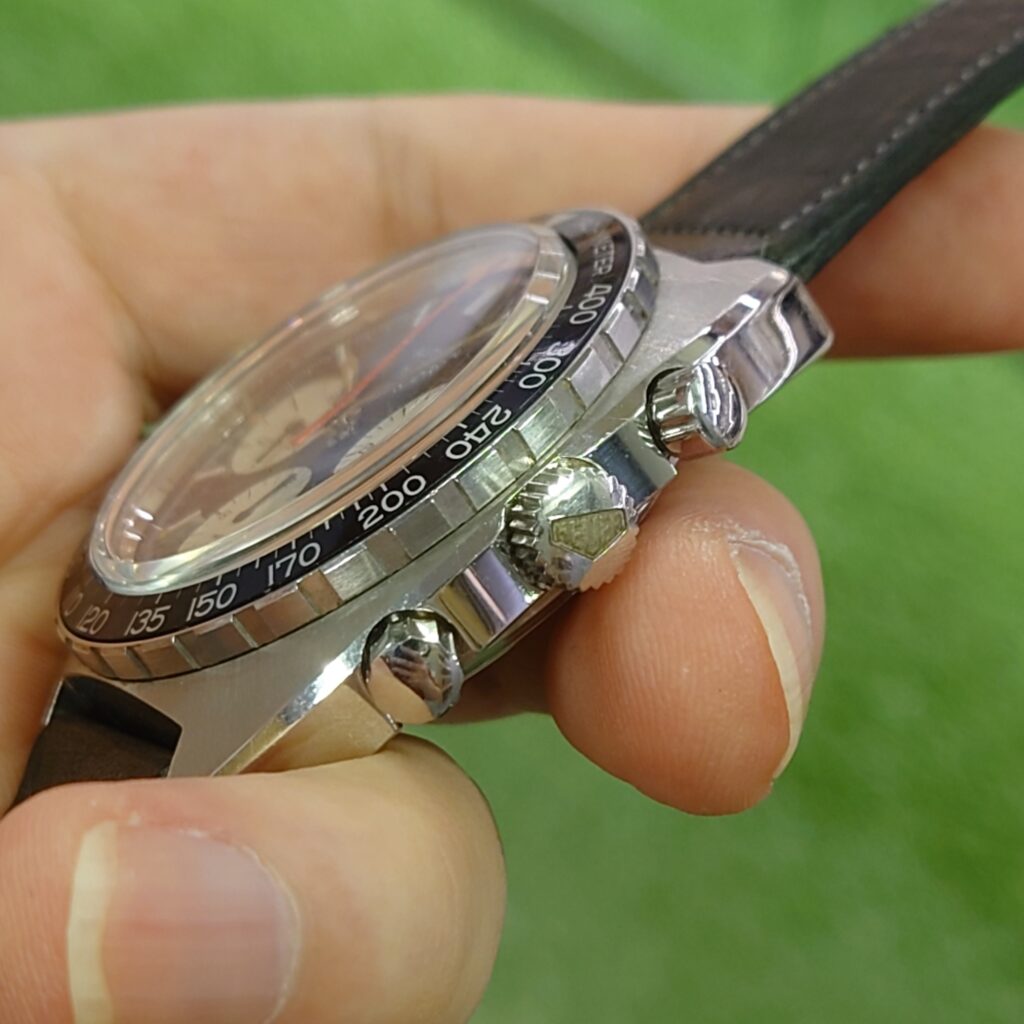 ちなみに、ご紹介の個体は70年代製のため、TAGの文字がないホイヤーロゴです。