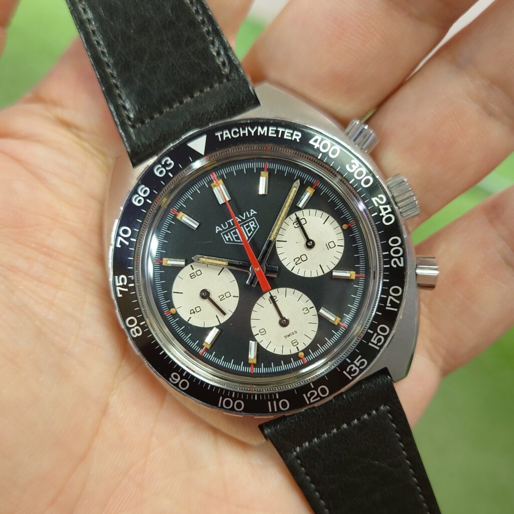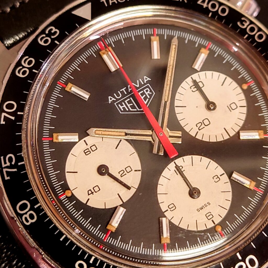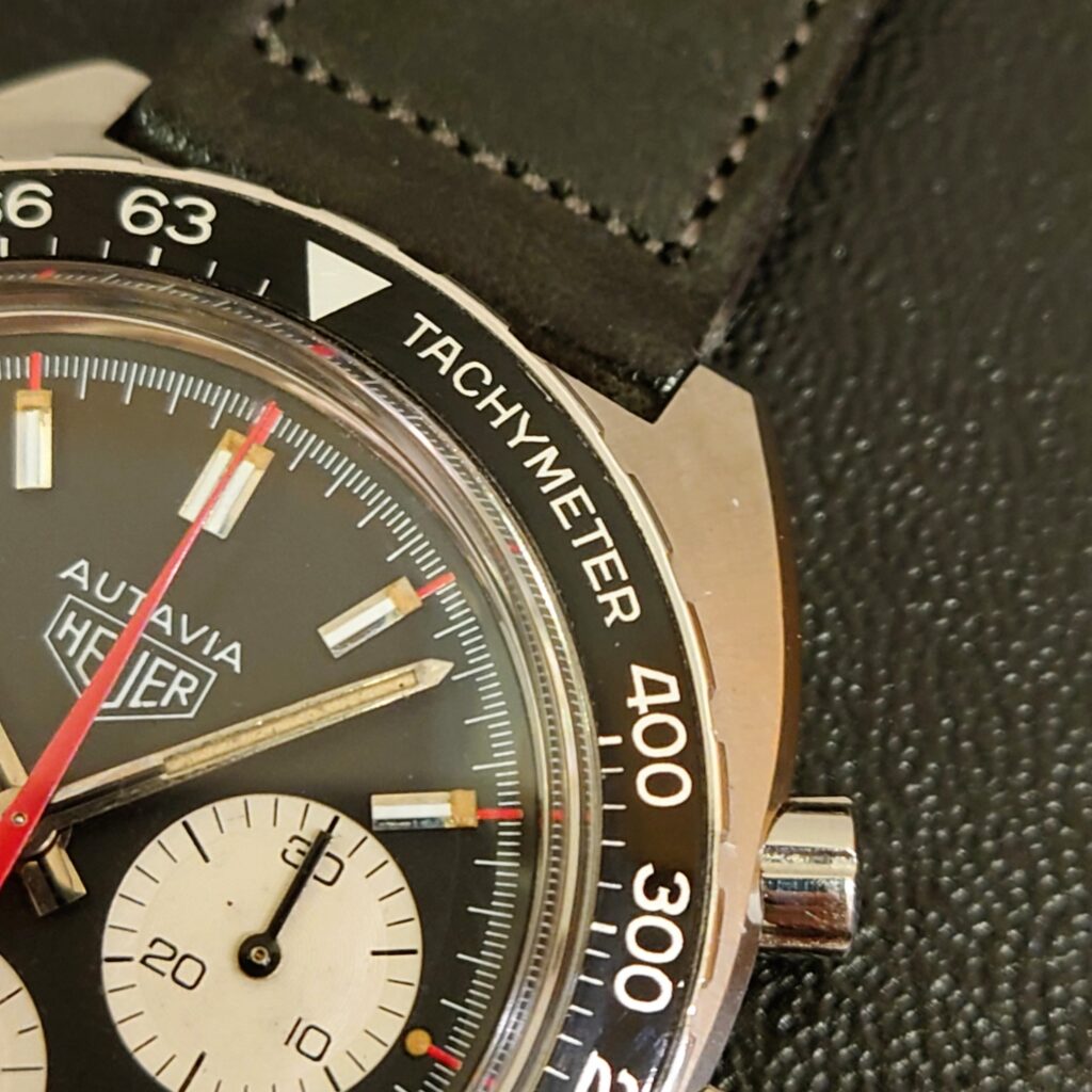 ちなみに、ご紹介の個体は70年代製のため、TAGの文字がないホイヤーロゴです。