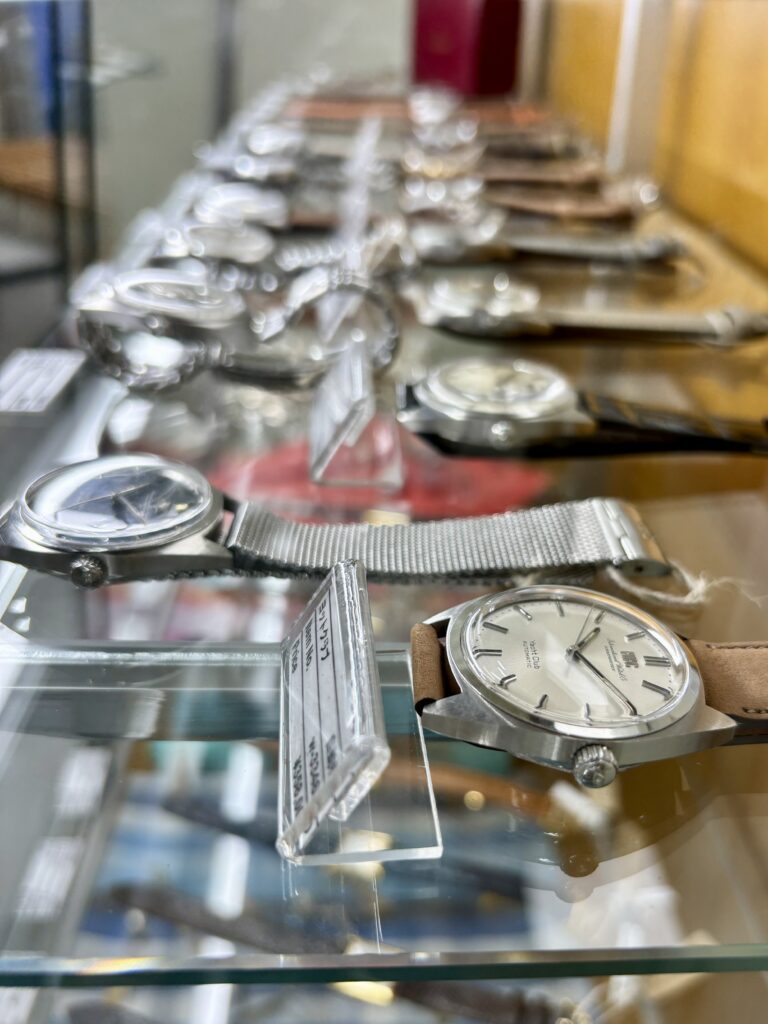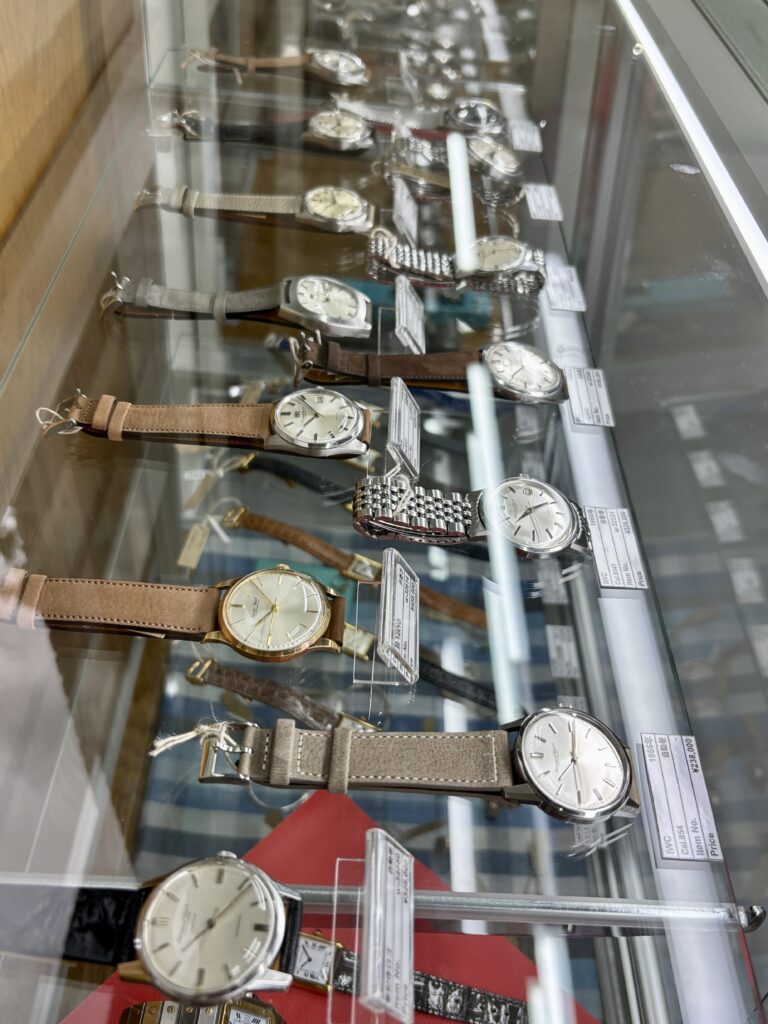 会社名が筆記体のみで記載された年代のモデルたちも店頭に取り揃えています。