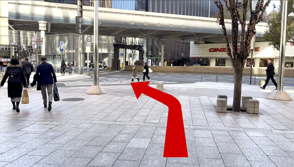 数寄屋橋交差点を「ソニーパーク」の方向に進んでください。