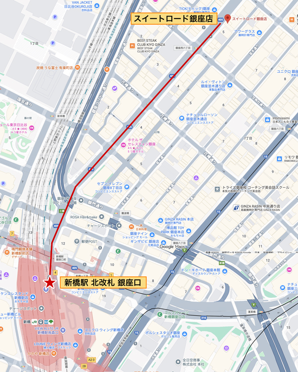 新橋駅からご来店する場合は、「北改札 銀座口」から出て、