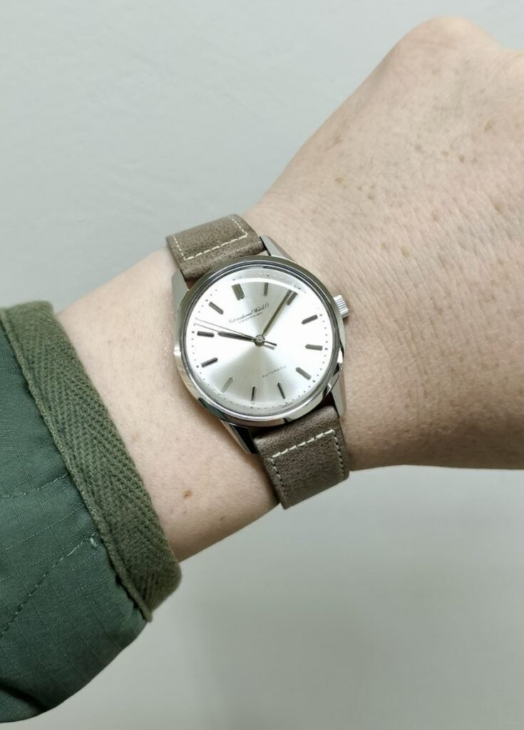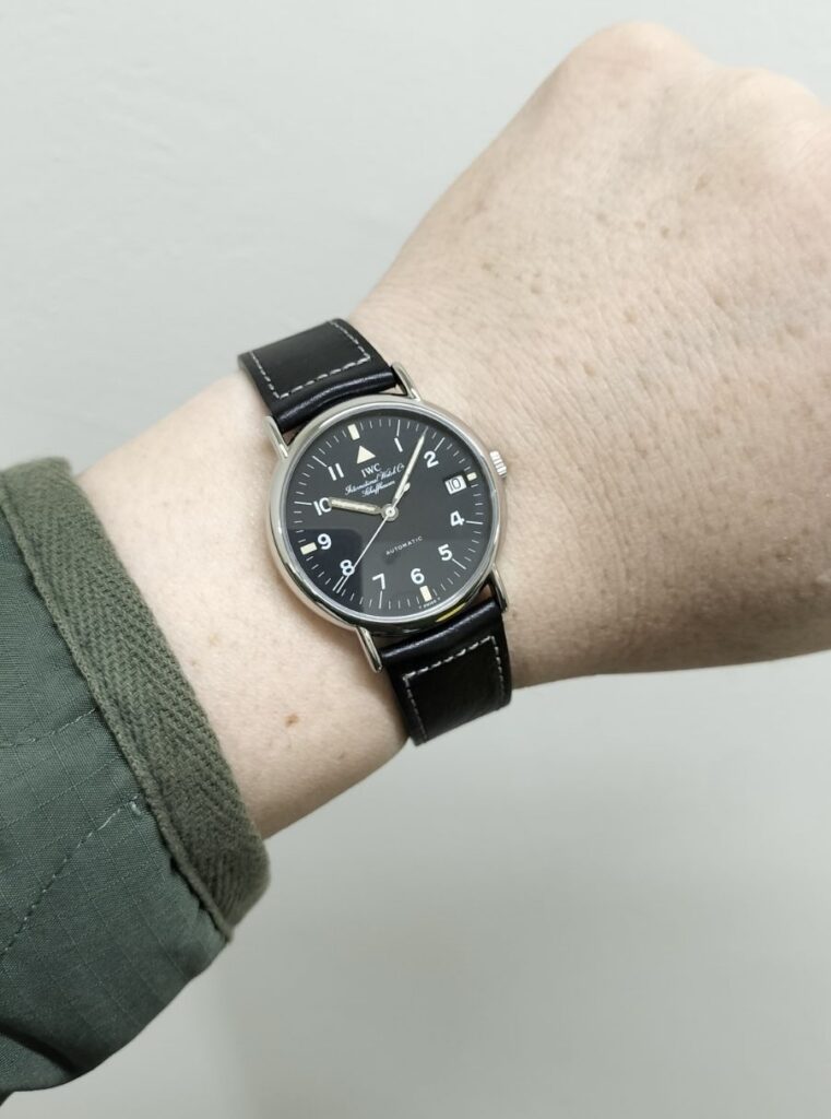 IWCのメーカーロゴが筆記体表記のみで文字盤に記載されているモデルを