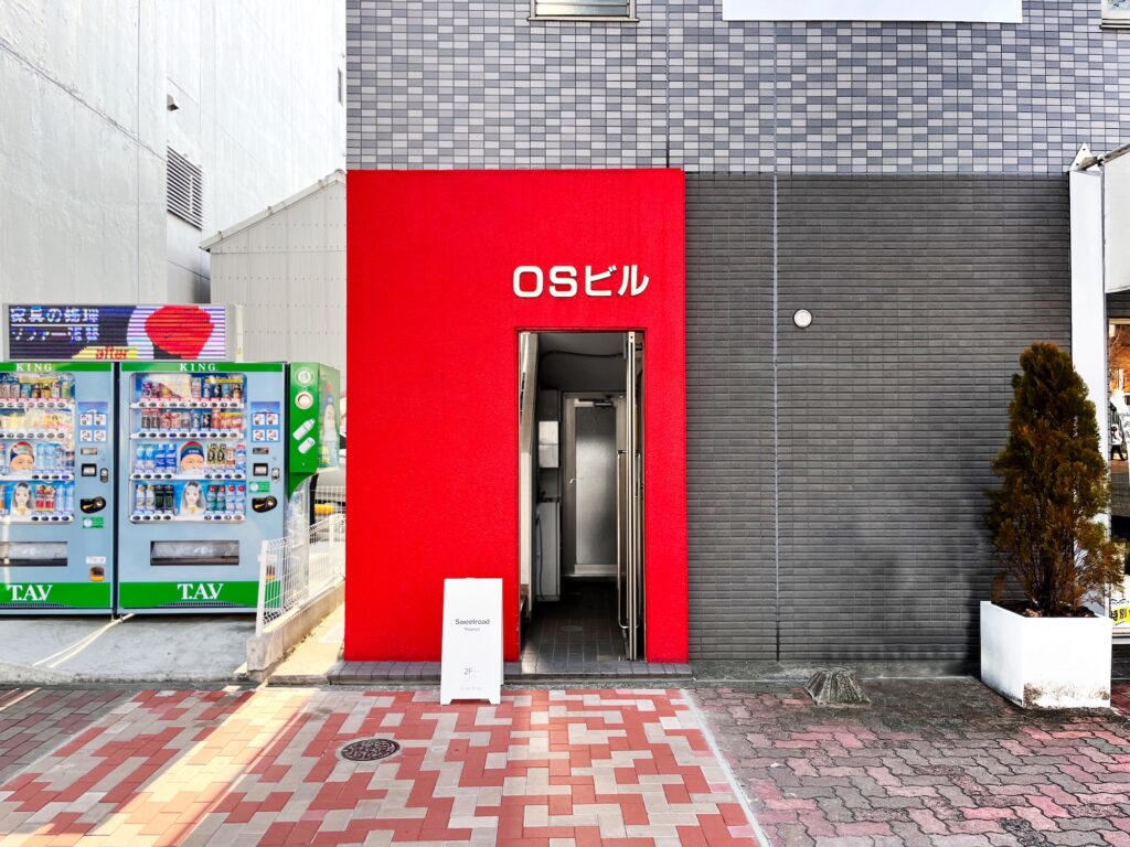 OSビルと書かれた赤い門のような扉を潜り、2階まで上がってください。